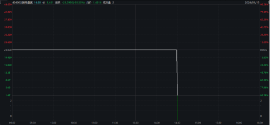 1月15日,搜特退债的价格突然大幅下跌,协议转让价格为1.481元/张,较上一个交易日的转让价格下降了93.58%。行情资料显示,该转债当天成交了2100张,成交金额约为3111元。