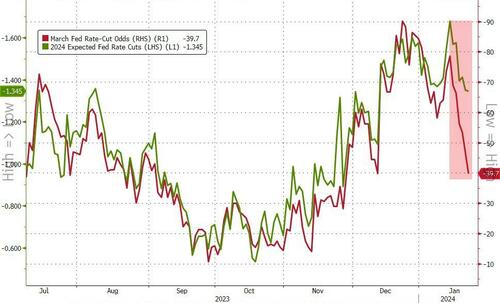 联邦基金利率期货市场的交易员最新预计,美联储3月降息的可能性已降至约四成,而在年初,这一概率还一度超过80%。随着交易员们调降对美联储3月首次降息的预期,他们如今已更关注5月行动的可能性。