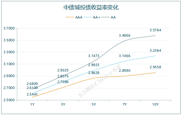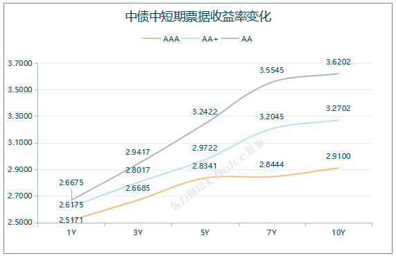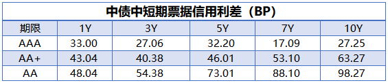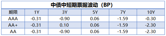 中债5年中短期票据(AAA)收益率报2.8341%,上行0.06BP;中债5年城投债(AAA)收益率报2.8628%,上行0.21BP。