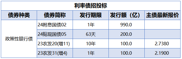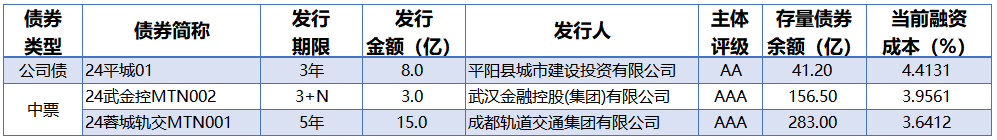 在利率债方面,国债发行2只,共1190.0亿元;政策性银行债发行2只,共200.0亿元;地方政府债发行2只,共210.6亿元。