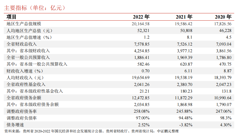 上述贵州主要经济指标来自上述评级报告