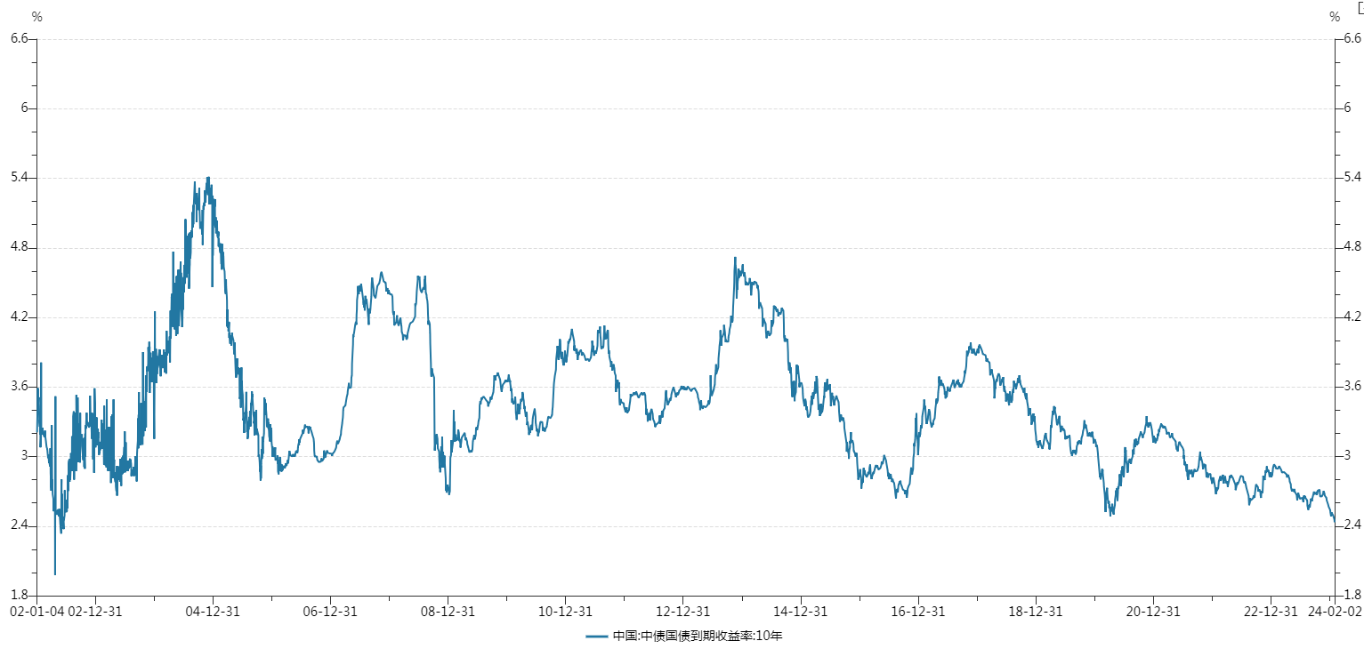 截至发稿,10年期国债活跃券下行2个基点报2.4%,创下10年期国债活跃券收益率2010年以来的新低。