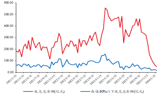“高收益债市场观察,迎来了这个系列的收官篇……(我们)见证了高收益债市场双周成交规模,从2021年初的200亿元上升至2022年末峰值的500亿元,再从2023年9月中下旬以来持续下降至当前48亿元的历史新低水平。”华创固收在近日的研报中如此表示,令市场人士读来颇有感慨。